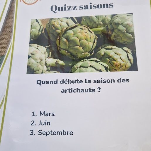 Jeux, quiz, manipulation de graines et des produits issus de la feme (graines, fruits…) ; et possibilité de cuisiner et déguster les produits avec un chef partenaire de Bons Matins - Faims d’Aprem (https://www.bonsmatins-faimsdaprem.fr/ateliers-de-cuisine-enfants-et-adultes)