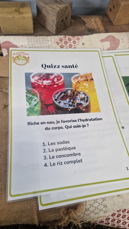 Jeux, quiz, manipulation de graines et des produits issus de la feme (graines, fruits…) ; et possibilité de cuisiner et déguster les produits avec un chef partenaire de Bons Matins - Faims d’Aprem (https://www.bonsmatins-faimsdaprem.fr/ateliers-de-cuisine-enfants-et-adultes)
